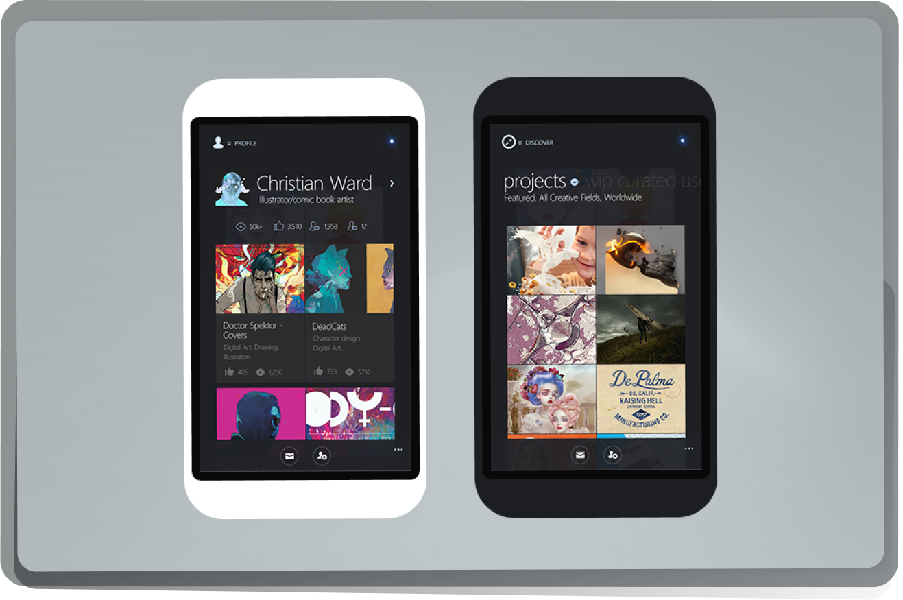 Redesign Project for the Windows phone version of Behance. Existing user flows were adapted to the Windows Phone navigation and UI patterns, which are all based on what the API could provide.